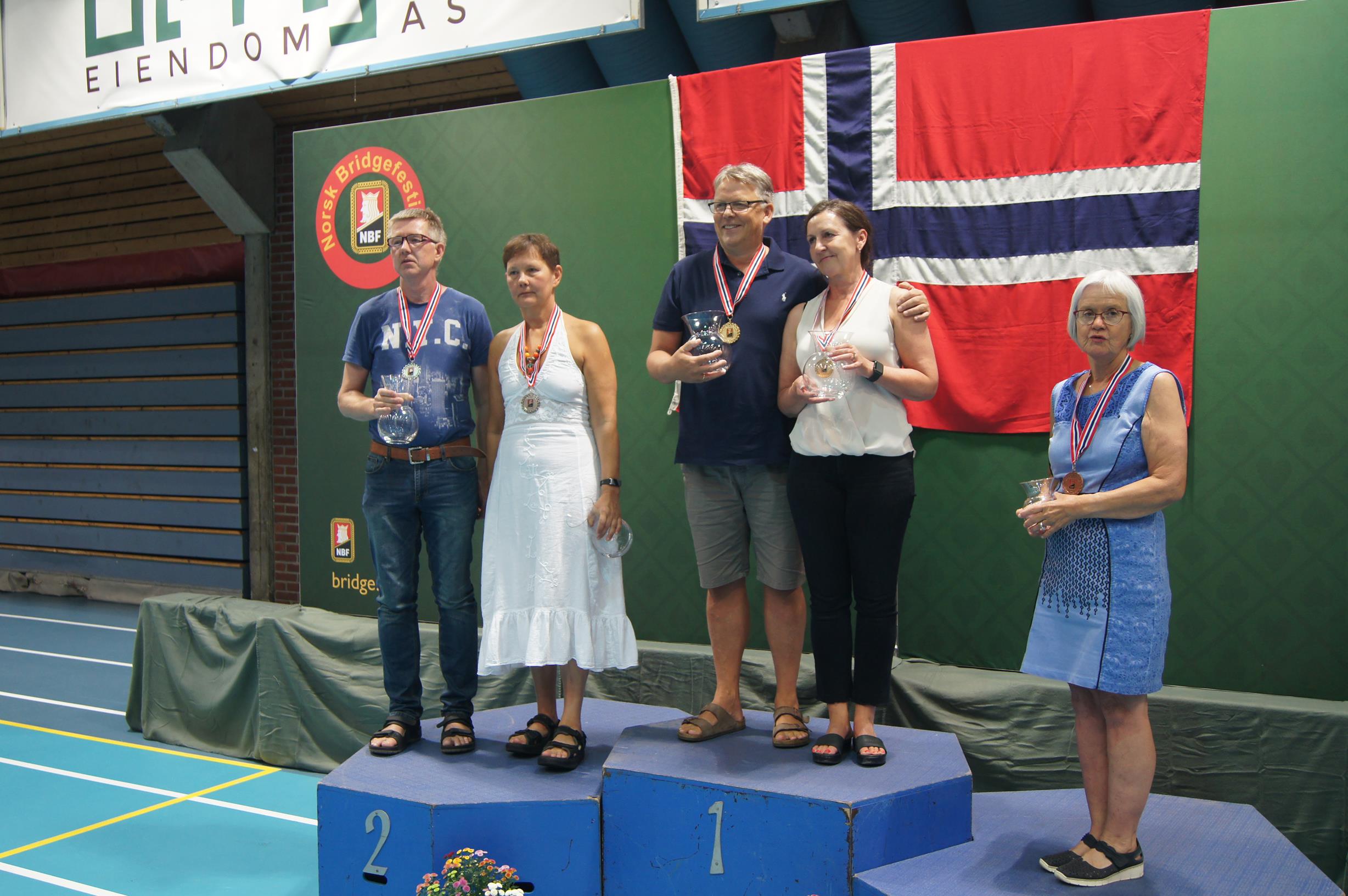 Etter en spennende innspurt hvor ledelsen byttet flere ganger og topp-4 faktisk møttes på de to øverste bordene i siste runde, så tok tilslutt ekteparet Marianne og Egil Homme seieren i NM mix par 2019. De representerer Kristiansands BK.