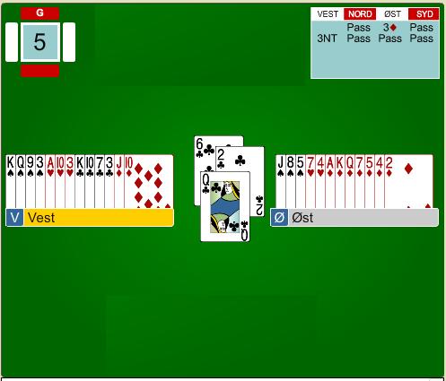 Du har kommet i 3nt og det er lagkamp. Hvordan spiller du, etter at du har fått kløver 6 (4. høyeste) ut til damen?
