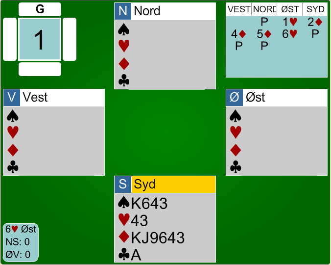 Etter ett "litt" uheldig meldingsforløp endte øst som spillefører i 6 ruter. Aaseng i syd spilte ut kløver ess og fortsatte med liten kløver. Øst stjal og spilte ruter mot damen, Aaseng la knekten. så ruter til esset og Aaseng fulgte med KONGEN!!! ERRU BLITT KLIN GÆÆRN NÅDA, kom det fra Aaby i nord. Aaseng hadde STORE problemer med å holde maska, men han klarte å beholde 10ern tilslutt. Spillet er sakset fra Bridgenytt, skrevet av Geir Helgemo.
