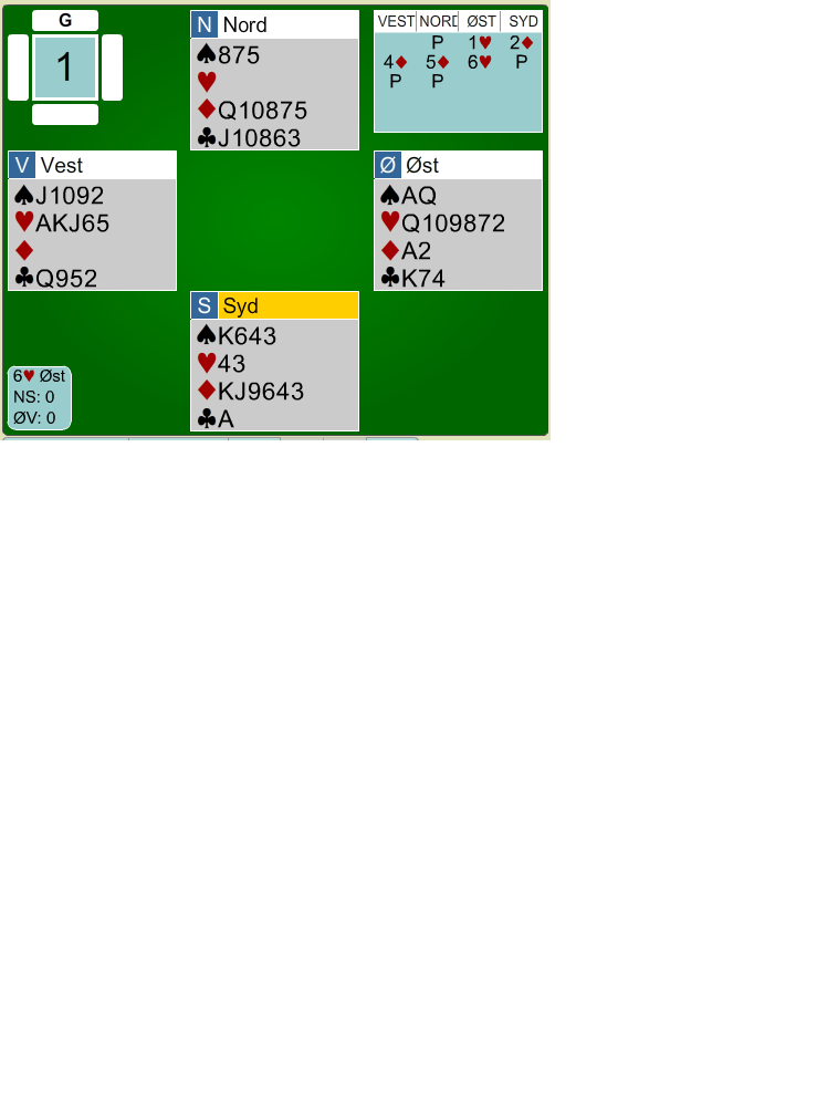 Riktig utspill var kløver ess, ALLE andre utspill= -980. Du blir sluttspilt på kløveress og må spille ruter til dobbelrenons, ELLER spar fra kongen.her er spillet. Etter kløver ess kan du bare lene deg tilbake og vente på sparstikket!!!