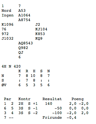 Resultata frå dei andre borda på spelet viser at fleire aust-vest par sleit i sparkontrakt: