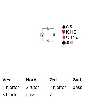 Arne Kristian og Kåre er gamle ringrever, og dette var vel fortjent. God bridge kommer av gode vurderinger, og spillet under viser hvordan gode vurderinger i meldingsforløpet produserer poeng. Arne Kristian og Kåre sitter øst-vest, og selvfølgelig er det jeg og makker som må unngjelde nord-syd. Sett deg i øst sin stol med korta under og gjør en god vurdering: