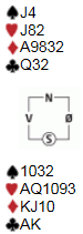 Elevene har forlatt skolegården for sommeren, og dermed byr anledning seg for mer bridgespilling. Selv om klubbspilling er å foretrekke, byr internett på gode alternativer for den bridgehungrige. Små turneringer på bridgenettstedet BBO er fin avkobling når regnet dusker ute, og fredagskvelden fikk jeg lurt med meg en nordøsterdøl opp i følgende gode og hardmeldte (?) slem: