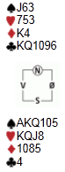 Allerede i spill 1 dukket et instruktivt poeng opp, du kan selv sette deg som sør og prøve å få hjem 4spar med disse kortene: