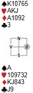 Spillet under spilte jeg med en ukjent makker på nettet, og du kan jo se om du klarer å få det til bedre enn denne. Øst åpner 1 ruter, vest svare 1 spar, øst 1NT før vest avslutter meldeforløpet med 3NT og pass rundt. Motparten har forholdt seg tause. Ut kommer liten kløver, antagelig fra femkort, og denne vinner spillefører med tieren på hånda.