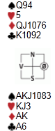 Jeg har fått tre innspill på forrige meldenøtt, men jeg avventer litt før jeg kringkaster. Det er greit å tenke at dette ikke er noen fasit-nøtter, mer ment som interessante meldeproblemer for (kanskje?) den litt mer drevne. Igjen har motparten sperreåpna, og dette gjør ting verre.