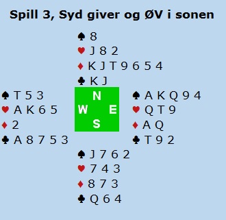 Det kom altså kløver ut til knekten og hjerter knekt tilbake. Boye stakk med esset og fortsatte med spar ti. Så fulgte kløver mot dama, og Vest var innspilt.