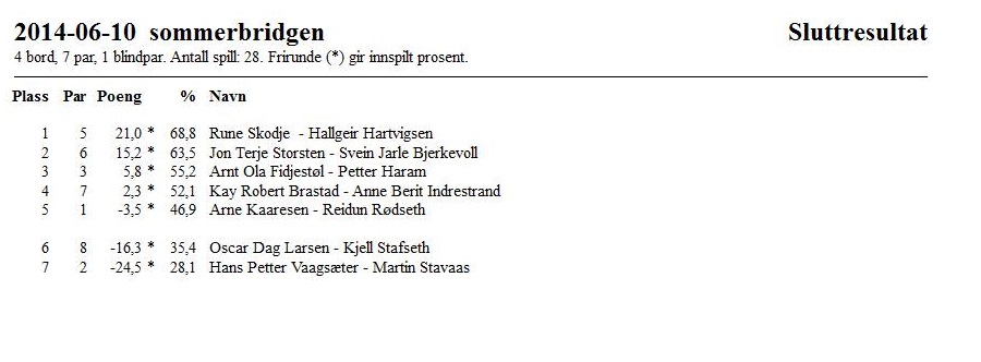 Odd Ivar vant igjen med meg som makker denne gangen.