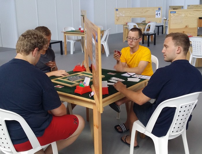 Boye og Espen er snart klart til å starte den store lagturneringa, Spingold. Jeg er ikke helt sikker når kvalifiseringa starter, men på onsdag skal det være 32 lag igjen. Da sendes det på BBO og vi håper lag Schwatz vises der. I tillegg vil det forundre meg om ikke Tor og Geir stiller for Zimmermann. I menyen til høyre er det link til resultater. I Sopot i Polen pågår det en festival med mange norske deltakere. Hittil er det spilt tre parturneringer over 30 spill, men i morgen (Mandag) begynner lagspillinga. Da kommer vi helt sikkert med flere norske i teten, håper vi.