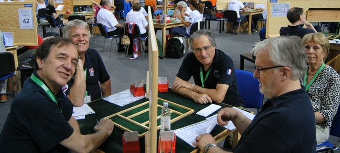 Helge og jeg møtte Anders Morath og Sven-Åke Bjerregård, to spillere som i mange år har spilt på den åpne svenske landslaget. Anders Morath har vunnet gull i EM tidligere, og to brosjemedaljer fra VM. To rutinerte spillere mao som sjelden gjør mange feil.