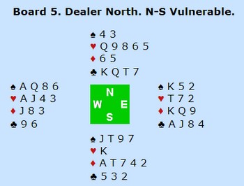 Nord (Helge): Syd (Roald): 1 kløver 1 ruter(benektet fem kort i major) 2 spar 3NT
