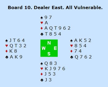 12 imp til Norge da Norge meldte fire hjerter i lukket rom. Hadde Bjerregård valgt å cuebide fem ruter, ville svenskene funnet slemmen og vunnet 11 imp på spillet.