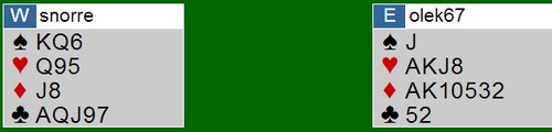 Det er slike spill som det under som avgjør lagkamper. I vest åpnet jeg med 1NT og ble etter noen melderunder plassert i 6ru som spillefører. Et poeng er at øst spurte i Blackwood og da viste jeg mitt ene ess. Da meldte øst 6ru uten å invitere til storeslem, så det er mye som tyder på at det er et ess vekk. Nesten før meldingforløpet er over, spiller nord ut hjerter ti. Din tur. Hvordan spiller du på beste måte nå for å vinne tolv stikk? Jeg trenger ikke å fortelle deg at uten å ta høyde for at utspillet er singelton, ser du helt sikkert at beste innledning er EK i ruter for å felle damen. Går ikke det, bra tar du kløverkappen for å kaste spartaperen. Du har overgang i hjerter til å kappe på nytt. Påvirker utspillet denne planen så mye at du endrer den? Eller går du rett på med ruterkapp, kanskje? Stikke hjerteren i bordet, ta en ruterhonnør og så kløverkapp? Bruk kommentarfeltet til å svare.