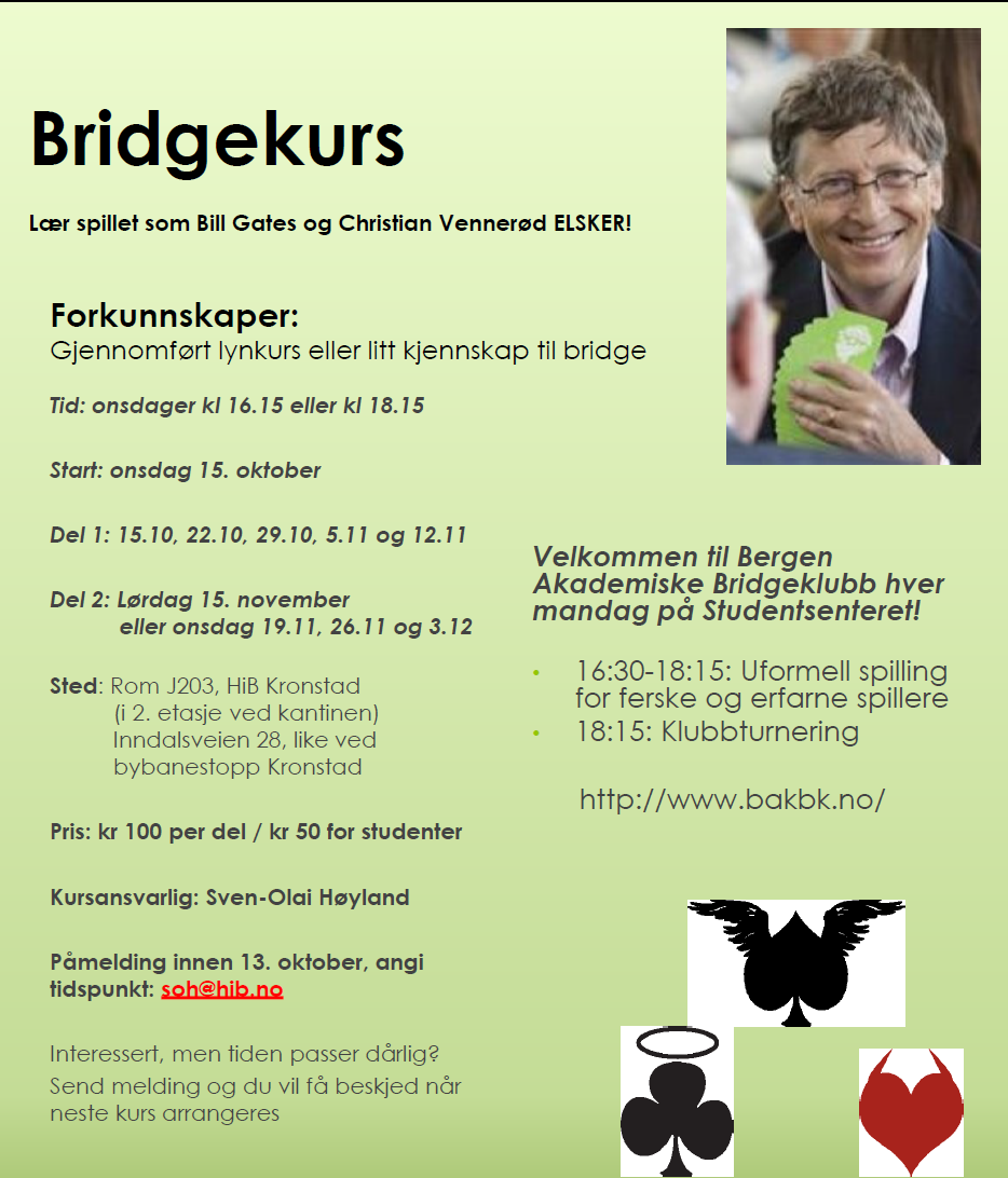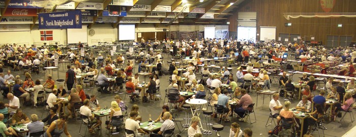 Bridgefestivalen er et stort arrangement, mye større og mer kompleks enn de fleste av oss tror. Logistikken er enorm, ikke minst med tanke på kort. 60.000 stokker er i bruk og feil i en eneste av dem, er kritisk. Praktisk er det en mengde forhold som skal være på plass og vi bridgespillere er flink til å klage ved det minste avvik. I år er turneringsprogrammet forandret og det var ingen som visste hvordan det ville slå ut på deltakelsen. Hei Inger Hjellemarken, store høvding. Har det gått bra? Joda, takk som byr, Snurr. Jeg begynner på bli sliten og mett, men det er en god følelse jeg sitter med nå på slutten av NM par. Før du får stille meg et eneste spørsmål, vil jeg få garanti for at du skryter hemningsløst av staben når du skriver dette intervjuet. Det er næremere femti stykker som har vært engasjert på en eller annen måte. Hver og en av dem har gjort en formidabel innsats og Festivalen hadde aldri vært det den er uten dem. Takk til kortfolk, informasjonsmedarbeidere, turneringsledere, regnskap og alle andre. Husk at dette arrangementet er omtrent like stort som Åpent EM i Ostende i 2013 var. Hvordan er du fornøyd med oppslutningen i år? Jeg har ikke helt oversikten, men samlet tror jeg vi er omtrent som de siste årene, muligens en liten nedgang. Det var kanskje litt få lag og par de siste dagene, men erfaringene fra tidligere Festivaler er at det er vanskelig å holde på folk de siste dagene. De er rett og slett fornøyd. Det tekniske har funka bra så vidt jeg har sett? Ja, det er noen som har sagt at det svenske mesterskapet er så mye bedre arrangementteknisk, men det kan jeg ikke helt forstå. I år var den største tabben at vi glemte å skru av en BridgeMate-server som ikke var i bruk. Da ble det litt kluss, men ikke verre enn at vi kjapt retta opp. Ellers kan jeg ikke se at noen har vesentlige ting å klage på. Turneringene starter til avtalt tid og slutter når de skal. At folk vaser og virrer i ganger og toaletter når du skulle sittet ved bordet, kan da ikke vi alltid henges for? Så hadde vi ei måse som kom inn i hallen. Skulle vi tatt fram hagla? Neste år er det EM i Tromsø. Blir staben din med opp dit? Faktisk vet vi ikke all verden om det pr i dag. Tidligere har EBU tatt med seg kort og medarbeidere til arrangørstedet, men det virker litt underlig av vi ikke skal bli involvert når vi har både utstyr, folk og kompetanse. Det skal være et viktig møte mellom EBU og NBF nå i midten av september og da håper jeg slike forhold blir avklart. Dette er min mening, men hvorfor skal arrangementet pøse ut penger til herrer og fruer i EBU når vi gang på gang har vist av vi håndterer dette fint selv? Sannsynligvis langt billigere enn EBU kan klare det. 2016 da? Jeg håper da det blir Festival også i framtiden. Fredrikstad har vist seg å være et flott sted å være. Går du i sentrum på kveldstid, er det bridgefolk overalt. Der det kan spises og drikkes hører du spar, kløver og ruter fra de fleste bord. Det er bra at vi sprer oss og setter vårt preg på byen. De aller, aller fleste oppfører seg også bra,. selv om det har vært de "vanlige" problemene med at et fåtall mennesker ikke kan vanlig folkeskikk og dermed drikker og bråker mer enn naudsynt. Vi kan nesten ikke gjøre noe mer enn å utvise de som ikke oppfører seg, så får rette sivile myndigheter ta seg av resten. Da ønsker jeg lykke til med oppryddinga. Vi er heldige som bare kan sette oss i bilen og kjøre hjem til mor. Forhåpentlig venter hun med kjøttkaker i brun saus og mandelpudding til dessert. Det er hyggelig med bridge og festival, men nå savner jeg deg, kjære viv. :-)