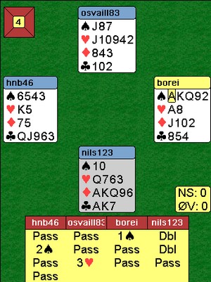 Det var det franske laget "Eidi" som møtte Polen/Israel's "Vainikonis" i finalen. Det var Eidi best og vant med 35 IMP. De resterende fjorten lagene spilte SWISS om tredjeplassen og den tok Tor og Geir for Zimmermann. Ingen stor suksess for de andre norske. De Button ble nr.8 av de resterende, mens Erik Berg - Steffen Fredrik Simonsen ble nr.11. Det er vanskelig å vurdere de norske parene sin innsats, fordi de var lite på BBO og det finnes ikke noen Butler tilgjengelig, i alle fall ikke som jeg kan finne. I morgen starter parturneringa og den er avslørende. Det spilles IMPS ACROSS THE FIELD og det er lagkamper med/mot alle de andre parene samtidig. Der er ingen dårlige lagkamerater å skylde på her. Lykke til alle sammen!!