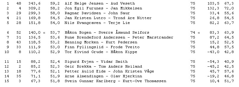 Sammenlagt leder Alexander og Kurt Ove, med Brynjar og Egil på andre plass.