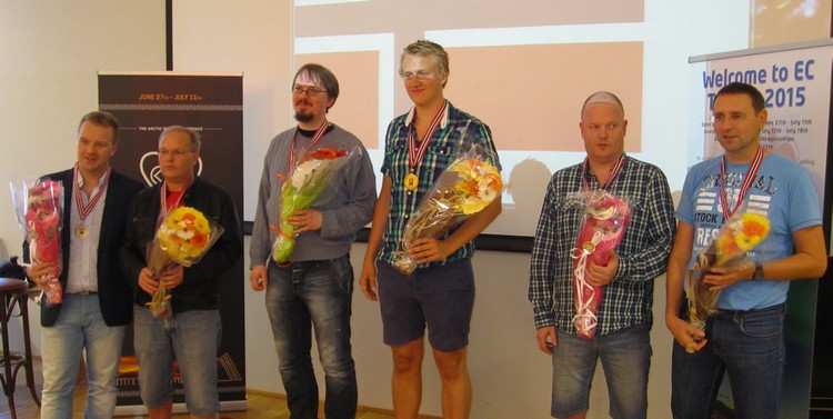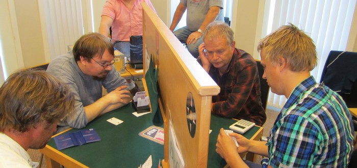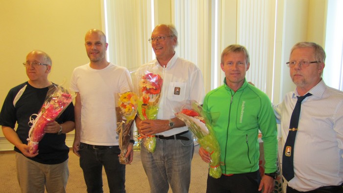 Tre favoritter på pallen i NM par 2014 Sølv til Nils Kvangraven - Terje Lie, vinnerne Håkon Kippe - Tor Eivind Grude og bronse til Ragnar Davidsen - John Saur RESULTATER Det er mange som fortjener skryt etter helgas NM arrangment. Lyngdal BK med Calle Knutsen og Karl Olav Hansen i spissen hadde lagt alt til rette for både stab og spillere-. Gaute Ubostad sitt strandhotell leverer varene på alle mulige måter. Spesielt maten de serverer er av prima klasse, langt over hva i alle fall jeg er vant med fra hoteller. Helge Mæsel var myndig, rolig og god turneringsleder. Markus Bruno hadde som vanlig full kontroll på regnskapet, selv når det kokte litt på slutten med protester, apeller og feildubletter. Takk til dere alle!! Calle Knutsen, Markus Bruno, Helge Mæsel, Gaute Ubostad og Tom Danielsen fra NBF. Mari og Isabelle var dyktige kortdelere i alle tre dagene. De var nok sannsynligvis de to som gjorde minst feil i helga. Bortsett fra Markus Bruno da..