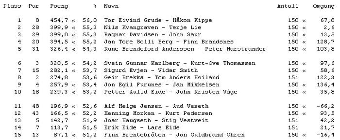 TOR EIVIND GRUDE OG HÅKON KIPPE TIL TOPPS!! Vi gratulerer så mye!! Denne artikkel blir oppdatert fra toppen, sånn at det nyeste ligger øverst. Bla deg nedover for å få med det som har skjedd fra starten, men jeg er ikke på plass før etter spill 30.