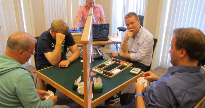 Harald Eide og Kristian Barstad Ellingsen satt Ø-V, og mens nederlenderne stoppet i 3 kløver, meldet våre gutter: