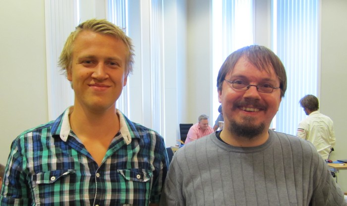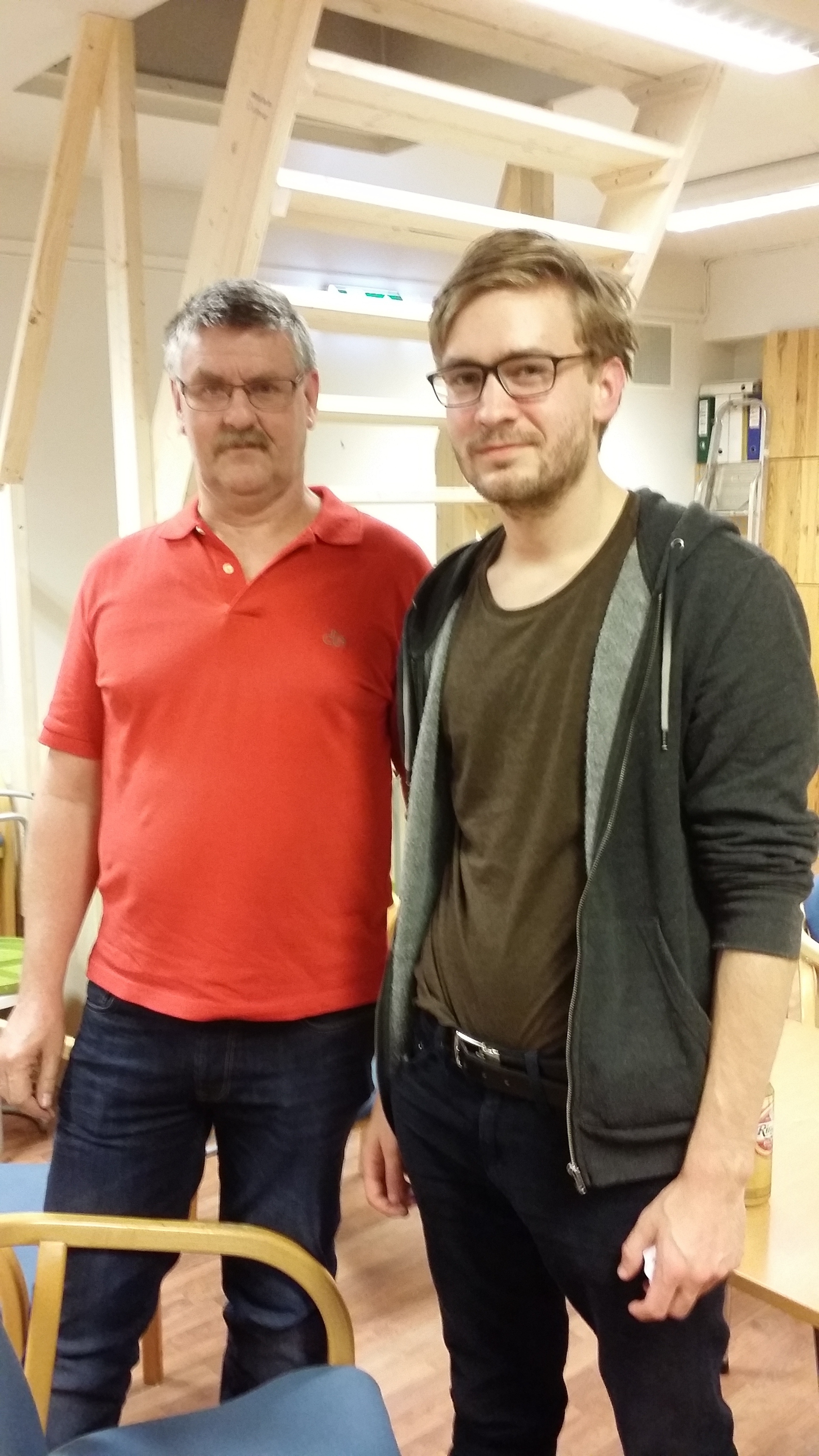 Vinner i A: Borgar Lunheim fra Tynset (til vestre) sammen med Leif Erik Hoel Stabell som vant B. I bakgrunnen senterets nye branntrapp!