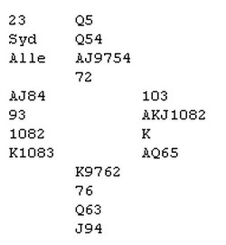 Vi spilte IMPS ACROSS THE FIELD i går. Da teller ikke overstikk så mye, men jeg holdt Egil Homme nede på ti stikk der det var elleve fra taket. En må glede seg over de gleder livet kan gi.
