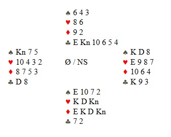 Spillet ser du under og vest skal gå i med kløverdamen for å drepe bordet. Enkelt når du får det presentert som et problem og jeg nesten roper til til deg, "Obs-obs, her er det noe du må passe på!" To av innsenderne har svart rett og det er sikkert mange andre som ikke gidda sende inn fordi det var for lett. Jeg skriver om spillet litt som et stikk til to av de flinkeste bridgespillerne i klubben min. Den ene var spillefører og den andre satt i vest. Spillet var ikke det samme som jeg har tatt opp under, men poenget var akkurat likt. Spillefører så ikke faren for at bordet ble drept og vest gjorde som har pleier, nemlig lavt i andrehånd. Begge to er kjempedyktige nøtteknekkere, men dette handler om noe jeg har skrevet om gjentatte ganger. "Å kjenne igjen posisjoner der og da" og "presens" (tilstedeværelse). Min påstand er at 90% av dere alle ville i praksis lagt en liten kløver hvis dere fikk dette som et problem ved bordet. Ja, du protesterer sikkert, men jeg tror ikke på deg. Så mange ganger har jeg sett av de enkleste teoretiske ting blir oversett i kampens hete. Hvis jeg snur hendene og lar den sterke hånda være blindemann, så vil 97% av oss legge en liten kløver når den blir spilt. (forutsatt av vi vet at spillefører har en relativt svak hånd med en lagfarge). Enda tøffere er spillet hvis jeg gir vest Hxx i kløver. Da skal han også gå i med honnøren sin. Selv om makker har honnør singel, vil det ikke koste fordi spillefører kommer til å gi bort det første stikket uansett. Har spillefører dobbelton, må han neste gang klare å toppe ut makkers single honnør. Dette kan du utnytte og rimelilg ufarlig legge i honnøren når du har KDx. Spillefører tror ikke du er så "dum", så han lasjer først og stikker med esset etterpå. Da har du vunnet et stikk og kanskje beita en utgang. Et siste poeng. La oss si at vest legger damen, spillefører stikker med esset og spiller knekten. Kan øst klare å stikke den med en gang? Det vil jo være veldig dumt hvis makkers dame var singel og spillefører har tre små. På den annen side er det nesten ikke å unngå at vest tenker seg litt om før han klasker i damen dobbel. Da klarer selv jeg å stikke med kongen andre gang, men har jeg da jukset? _____________________________________________________________________________