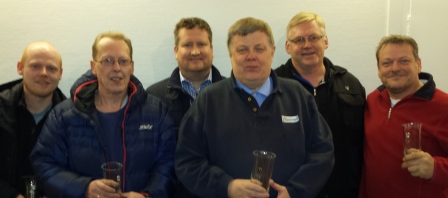 På seierspallen: John Ivar, Svein, Øyvind, Jon, Thor og Jarle