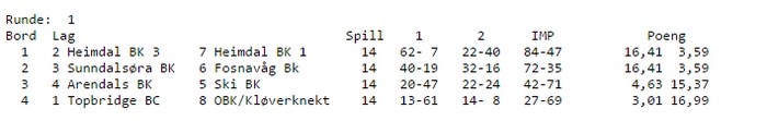 Det sendes en kamp på BBO fra hver runde, og det vil overraske meg om den første ikke er fra innbyrdes mellom de to Heimdalslagene. Her er første kamp: