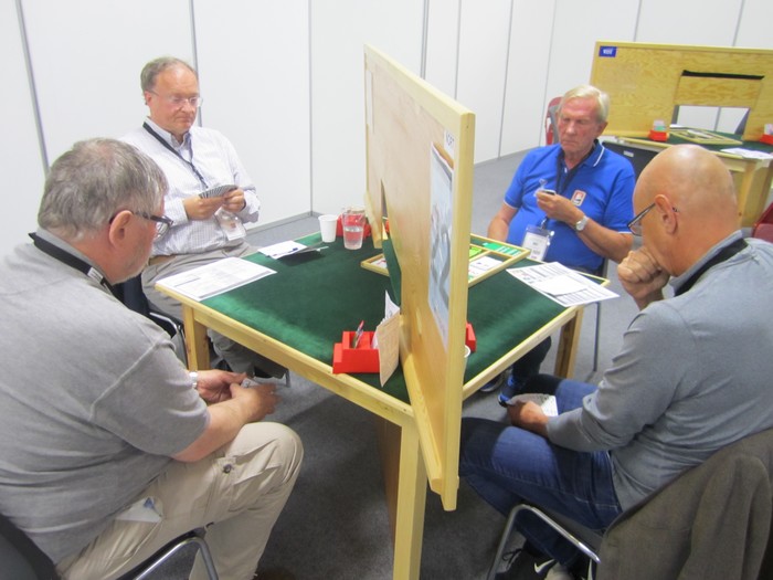 Man kan sikkert diskutere stilen min her på bloggen, men jeg håper å bli trodd på at alt (nesten) fra min side er gjort med et smil om munnen. I en artikkel for minst et år siden roste jeg Asbjørn Kindsbekken for en spilleføring på BBO, men i bildeteksten hadde jeg sagt noe som dette. "Kindsbekken, kjent som en middelmådig norsk førstedivisjonsspiller, omtrent på mitt eget nivå". I går traff jeg han og makker Roar Voll i kantina etter kvalifiseringen til Åpent lag. Laget deres, ABAX, hadde røket ut med liten margin og jeg spurte hvordan det føles. Asbjørn var kjapt framme med svaret. "Vi er egentlig ganske førnøyd. Middelmådige norske førstedivisjonsspillere kan vel strengt tatt ikke forvente mer."
