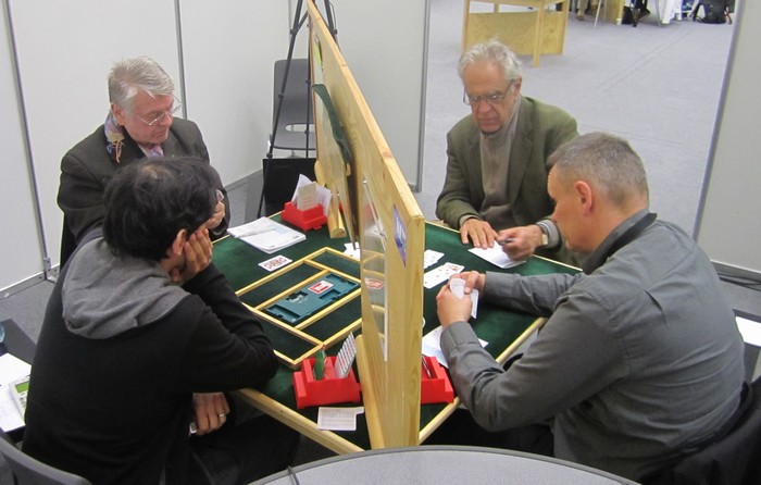 Hvordan har dere det? Jeg har snakket med mange deltakere i løpet av dagen og tilbakemeldingene er stort sett de samme. Det arrangementtekniske er upåklagelig og turneringnene går smertefritt. Selve spilllehallen er også flott, høyt under taket og god plass mellom bordene. Det var kaldt de første dagene, men det er ikke noe problem lenger. De fleste klagene på temperaturen under mix kom fra spanske og italienske spillere, så en trenger ikke å være rakettforsker for å skjønne noe av problemet. Servering og kantine har jeg heller ikke hørt annet enn positivt om. Resultatservice er annerledes enn de vi er vant med, men det funker. Ingen får spillstensiler og slipper, men de som ønsker kan gå til printere som er plassert sentralt, dra adgangskortet og få utskrifter av sine spill med resultater. Vi norske savner BUTLER, men det er visst ikke alle utlendinger som er like opptatt av den. Det flere kommentere er at det er liksom ikke så mye "stil" over lokalene. Toaletter er sånn som en finner på festivaler for ungdom og når en kommer til Mackhallen, får en liksom en bakgårdsfølelse. Jeg vet ikke om dette er viktige ting, men dere deltakere er litt rare også. Det skal være så billig som mulig, men det gjør ikke noe med litt luksus? På en annen side er det kanskje ikke billig , 800 EURO pr. lag er godt betalt og da kan en kanskje kreve noe? Det kommer spill i løpet av kvelden, men jeg har ikke rukket å se så mye i dag. Kommer sterkere tilbake med kampreferater når sluttspillet starter. Åpen klasse Det er ikke all verdens av norske flagg på resultatlistene, men vi må da for all del håpe på minst ett lag i sluttspillet. Det er flere norske spillere bak de grønne flaggene (GILLIS med Kvangraven, Lie og Odin Svendsen, NORALIA med Sveindal - Rasmussen, ERICHSEN med Espen Erichsen, Erlend Skjetne, Erik Berg og Steffen Fredrik Simonsen). Omtrent 120 VP vil holde til sluttspillsplass og det er viktig å ikke tape (stort) i de to siste rundene. HER KAN DU SE LAGENE OG HVEM SOM SPILLER