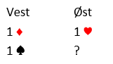 Jeg så spar som uaktuelt og makkers andre farge må være kløver( 2 ruter viser spar pluss en farge til på minst fem kort ) Jeg valgte den, men det var helt feil: