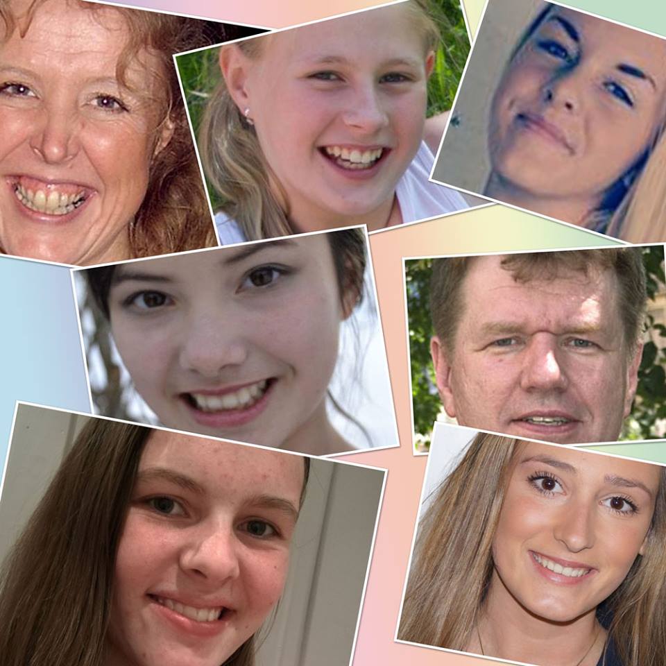 Heia Norge! Øverst fra venstre Elisabeth Sjødal (coach), Sofie Sjødal, Thea Hauge, Thea Indrebø, Sven-Olai Høyland (kaptein), Agnethe Kjensli og Katarina Ekren. Fotokollasj: World Bridge Federation (WBF)