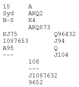 Så snart syd støtter kløver må nesten nord ta sjansen på slem. Den avhenger sett fra hans synspunkt kun av at syd har hjelp i ruter (damen), eller at syd har spar konge (gir avkast for en ruter), eller om syd har ingenting (men kløvertilpass) kan godt 6 kløver stå likevel, om ruter ess sitter riktig. Slik hele spillet så ut vinnes 6 kløver om det ikke kommer ruter ut til esset og ruter til stjeling, men spillefører må i så fall gjette ruteren.