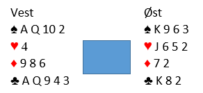 Hvis derimot alternativ 2. er det man bruker vet vest at Ø/V har 4-4 tilpasning i spar! Slik sæ Ø/V sine kort ut, og det var mange som lot N/S spille 3 ruter!