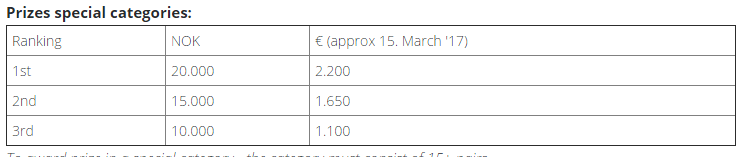 Av de som kommer med ambisjoner om å kapre den storflotte førstepremien i åpen klasse vil det først og fremst være omtrent det som kan krype og gå av norske toppspillere. Det blir tretten hovedpremier (forutsatt at 250 par deltar). Førsteprisen er på fantastiske kr. 300.000 (ca. 33.000 Euro).