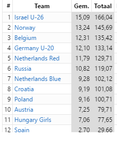 Her er resultatlisten i grunnspillet, Norges pulje: