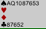 Makkers 5 ruter må være kontrollmelding. Vi flytter aldri kontrakten fra utgang i major til 5 i minor når åpneren har vist (som regel) åttekorts farge. Så ny farge er kontroll i fargen og sleminvitt i spar. Hvorfor meldte ikke makker 4 grand for å spørre etter Key-Cards? Fordi han mangler en kontroll i en farge, og det er (selvsagt) kløver som er det svake punktet. Siden makker går på til femtrinnet UTEN kontroll i kløver må han ha alt som behøves i de andre fargene, hvis ikke kan jo godt sett fra hans side 5 spar gå bet hvis også åpneren mangler kløverkontroll. Her hadde ikke åpneren noe problem, han måtte slå av i 5 spar siden også han manglet kløverkontroll. Da passet nord, og de skulle spille utgangen sin på fem-trinnet. Disse meldingene bør også motspillerne merke seg. Hva ville du spilt ut mot 5 spar med disse kortene?