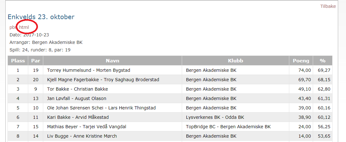Hvis man skulle foretrekke gamle versjonen, kan man trykke på html over resultatene: