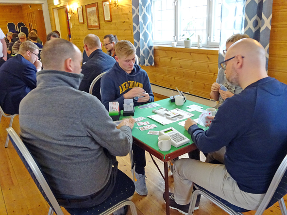 Jim Høyland og Sigurd Østerbøvik vann årets juleturnering. Her frå runden dei spelte mot Trond Hantveit (t.v) og Anders Dale