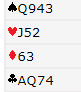 Øst åpner med 1 ruter, og syd melder inn 3 spar. Du har ingen god melding (dobling viser verdier, og mer ment som "take-out" slik som de fleste spiller). Så vest og nord passer før åpneren kommer tilbake med 5 kløver. Hva gjør du nå?