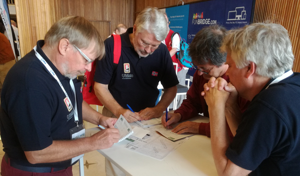 Seniorene innehar også 3.plassen så langt, 13 VP bak Frankrike på 1.plass. Det er 31 VP ned til 9.plassen. De gjenværende motstanderlagene har gjennomsnittlig 9,6 plass, altså noe over middels. Vårt rutinerte mannskap har kun tapt noen få kamper, og så langt i dette mesterskapet aldri med store sifre. Det største tapet kom mot Ungarn som slo oss med 15 IMP. De klarer VM-plass greit, tror jeg, og det er gode sjanser for medalje også.