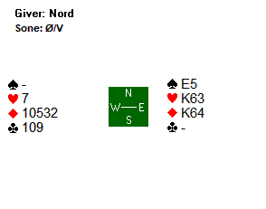 Syd har gjennom meldingene vist minst åtte kort i major, men kan godt ha enda mer. I tillegg har hun vist fram 3-korts kløver. Dermed er det slettes ikke usannsynlig med nettopp singel ruter ess. Med en annen singelton ville syd kanskje spilt ut ruter for å få ei stjeling? Uansett er det altså helt gratis å ta med seg denne varianten.