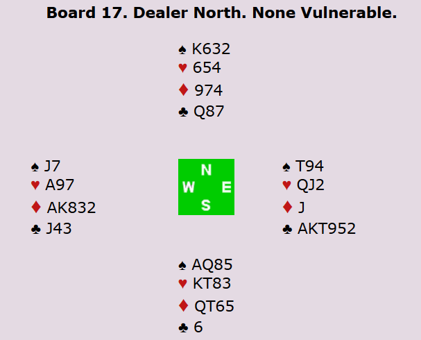 Ved tre andre bord av 32 bord i åpen klasse valgte øst å spille ut kløver bare for å være nødt til å notere -1430. Jeg føler i alle fall med dem...