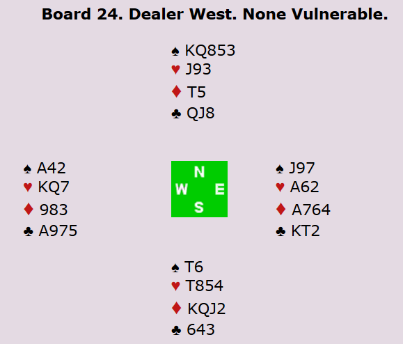 I spill 24 var standardkontrakten 3 grand, men som vi ser har både øst og vest trillrunde hender, og dermed begrenset stikkpotensial: