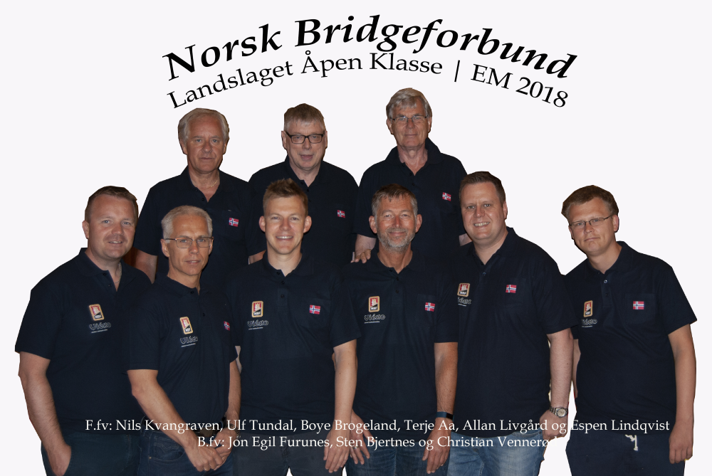 På spillet etter fikk Allan og Terje hjem 5 kløver doblet med 2 overstikk og +1150, mens Espen og Boye lot doblingslappen bli igjen i meldeboksen for 11 nye IMP til Norge.
