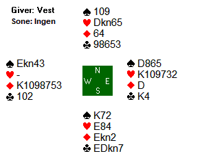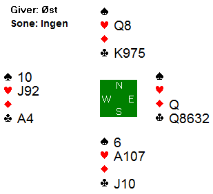 Den norske syd valgte å si 2 hjerter, og da gikk det pass rundt. Denne gangen ble det feil, da dette var alle hendene: