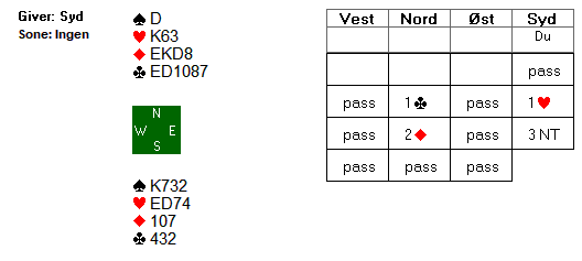 I spillet vi tar med fra Ungdoms-VM i dag skal du få prøve deg som spillefører i 3 grand på syds hånd: