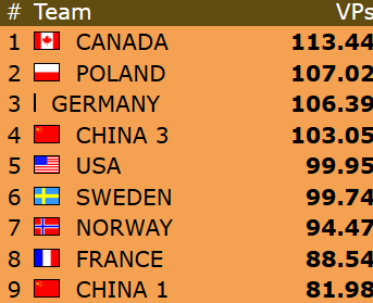 U21 (22 lag deltar): Norge - Canada 9,34 - 10,66 Norge - Israel 0 - 20 Norge - Chile 11,28 - 8,72
