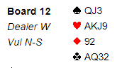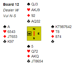 Nord var heldig med at syd hadde A-K i ruter, og singel spar, men likevel avhang slemmen av at kløver konge satt riktig.