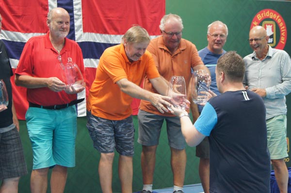 I lagturneringen deltok 22 lag, og det ble hjemmeseier til lag Kvaran: Rune og Bjørn Kvaran, Anders Holmen Gundersen og Geir Enge. Hele resultatlisten for lagturneringen med butler og det hele finner du her.